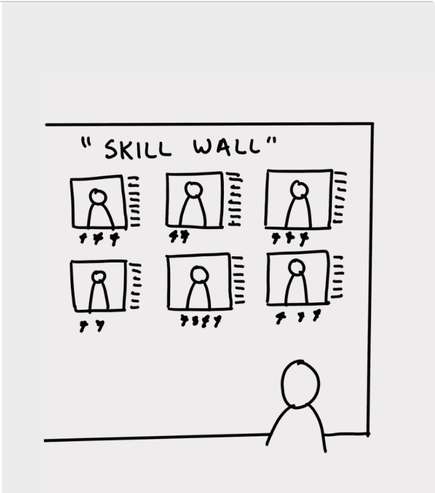 The physical Skill Wall consistently sparked real conversations in studio spaces, confirming that visibility + proximity lowers hesitation and drives mentorship interactions.