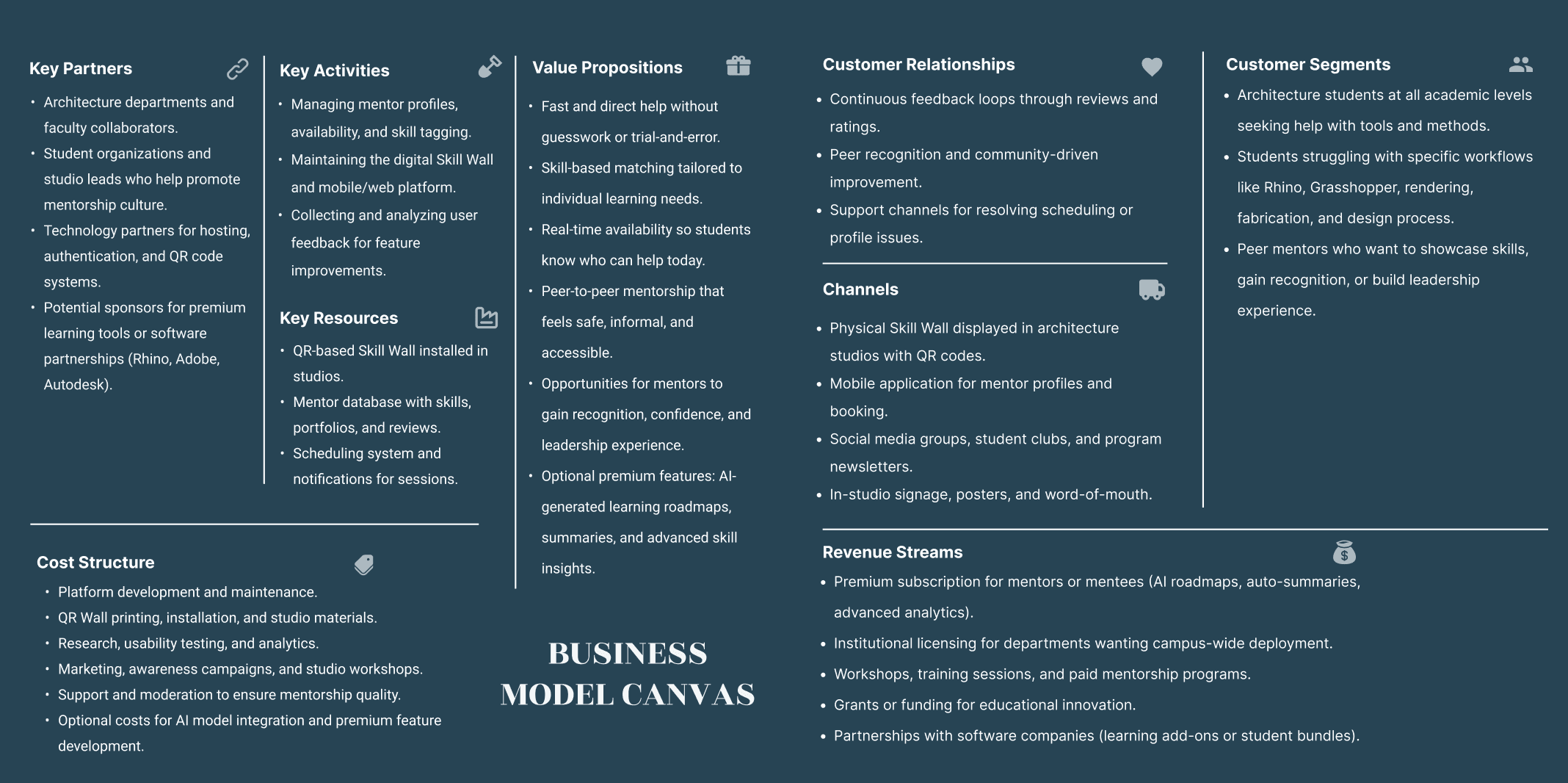 MentorMap was designed as a scalable product concept, with success measured through reduced time-to-help, increased mentorship participation, and earlier skill-specific interventions. Pretotyping helped validate real student intent before proposing a full platform. While built for architecture education, the model is adaptable to any skill-based learning or mentorship ecosystem.