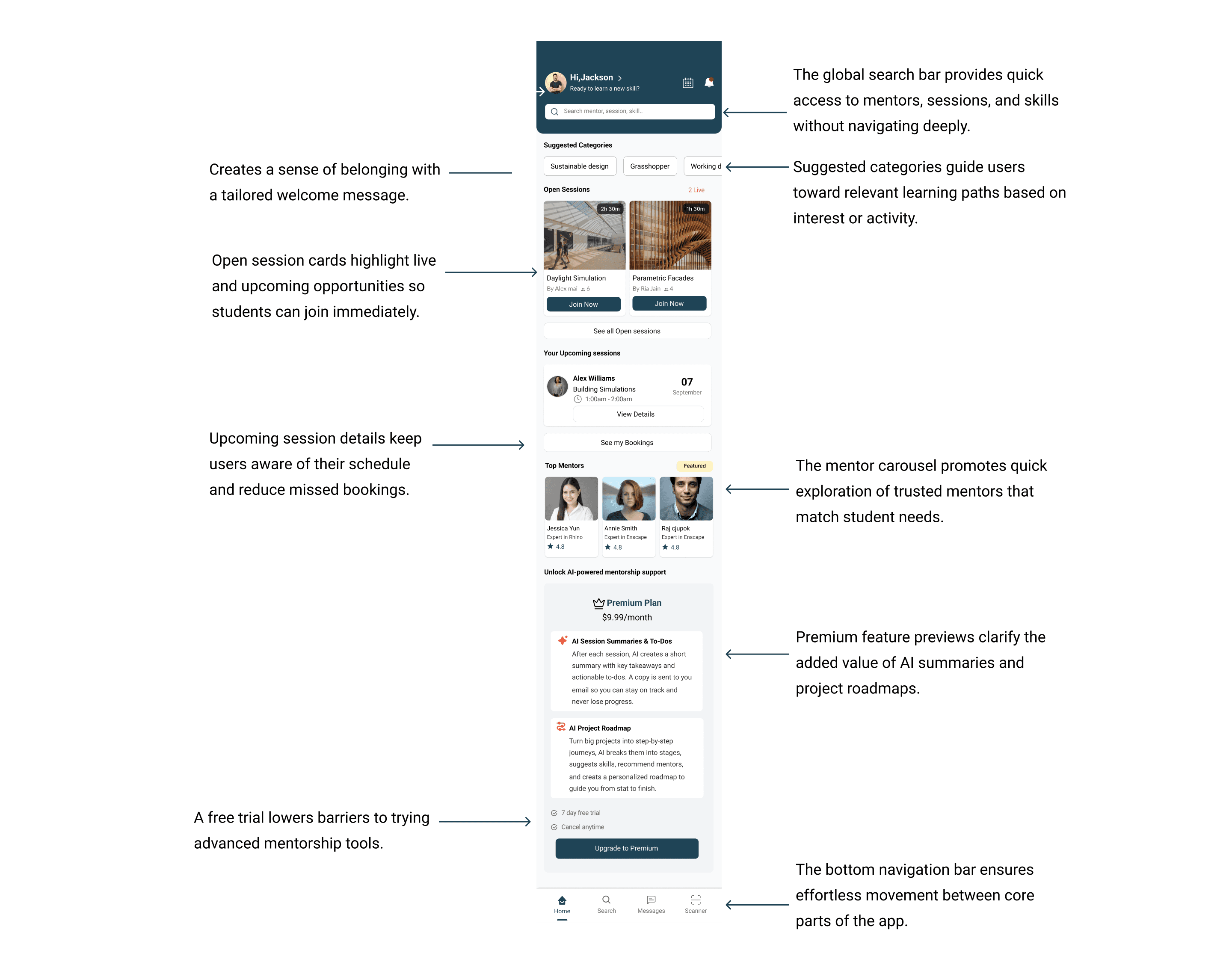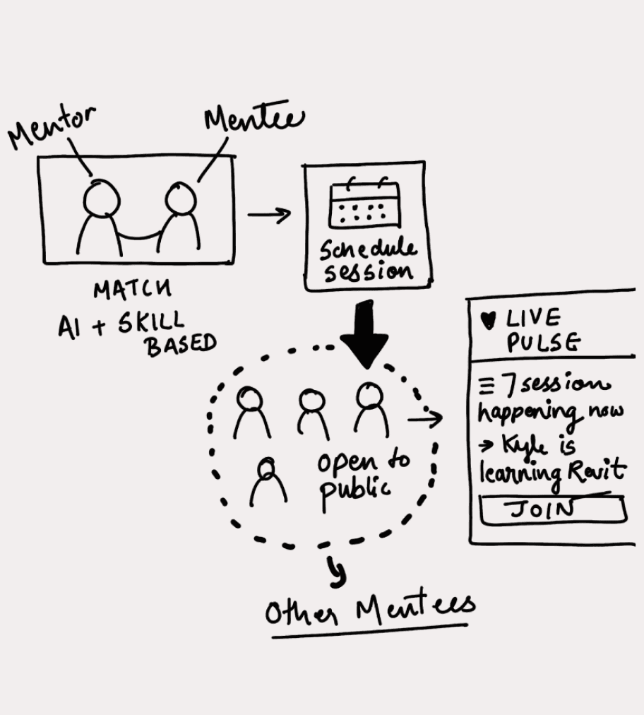 I led the project end-to-end - from research and problem framing to concept development, interaction design, usability testing, and early market validation. The work combined UX research, service design, and product thinking to reimagine how mentorship could work at scale